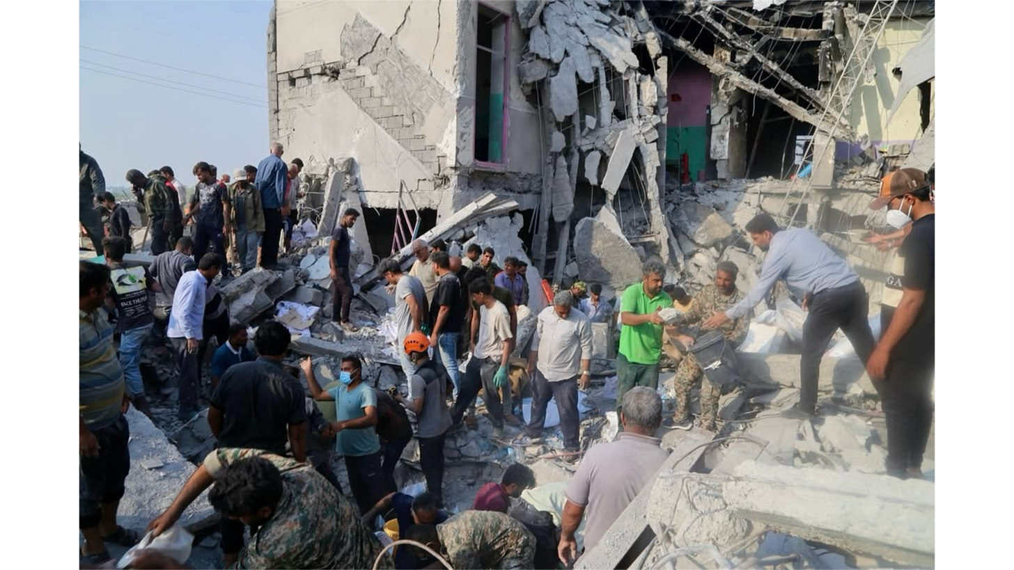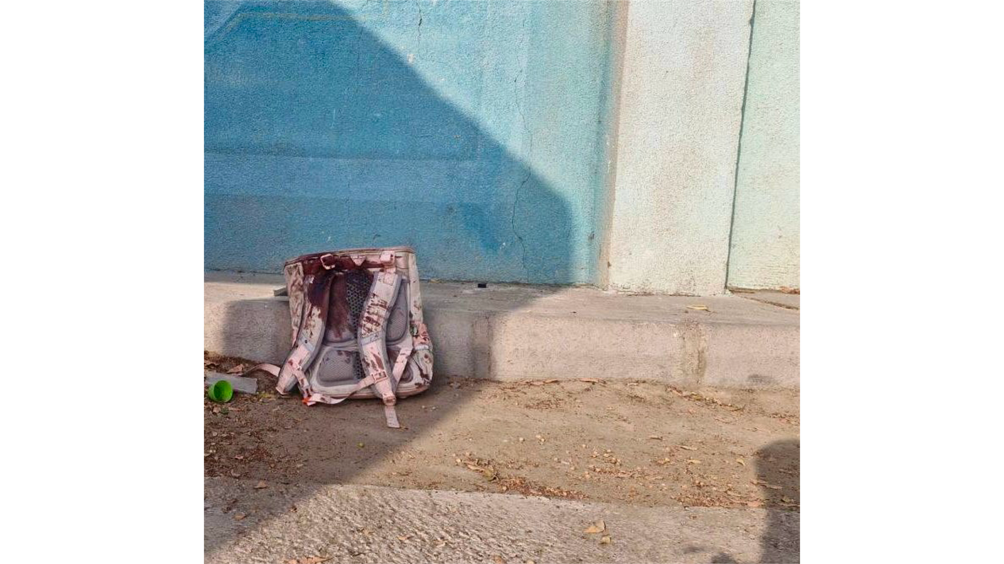 Out of the rubble, rescuers piled up the backpacks of students, many still soaked in blood. A video from the scene shows papers and school supplies lying across the ground, covered in dust and debris. The people helping, doing what little they can, appear shocked, unable to comprehend what they just witnessed.